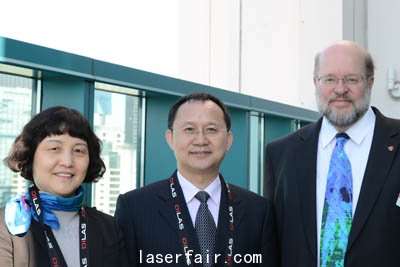 下圖左起:武漢國家光電實驗室主任助理林林博士,實驗室常務副主任兼長江學者駱清銘教授,SPIE主任Bill Arnold。華中科技大學光學工程計劃在最近中國教育部的95個項目中排名第一位。