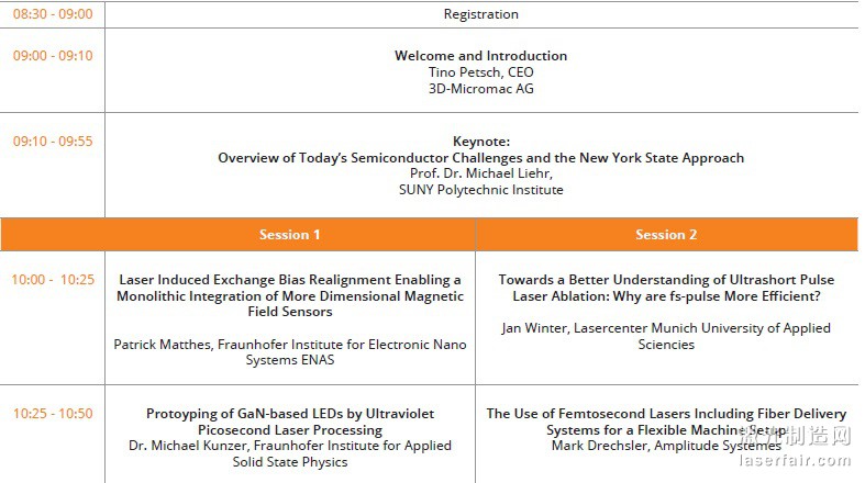 會議的主題主要是聚焦于激光微加工和柔性薄膜系統(tǒng)的制造技術(shù),更多的論題包括: