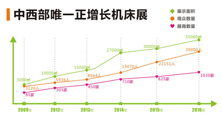 看圖說(shuō)話,歷年持續(xù)正增長(zhǎng)2012年鄭州國(guó)際機(jī)床展成功移師至鄭州國(guó)際會(huì)展中心,展示面積突破1萬(wàn)平米,一躍成為中部規(guī)模最大的制造