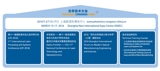 光學(xué)技術(shù)大會旗下包括第十一屆國際激光加工技術(shù)研討會(LPC2016)、第十一屆全國激光技術(shù)與光電子學(xué)學(xué)術(shù)會議暨中國光電產(chǎn)業(yè)與技術(shù)高峰論壇、2016“現(xiàn)代光學(xué)制造工程與科學(xué)”(上海)國際論壇、工業(yè)用激光器及系統(tǒng)使用安全培訓(xùn)班和2016年先進(jìn)激光與微納制造培訓(xùn)班。展會同期還將舉辦中國(上海)國際機(jī)器視覺技術(shù)及工業(yè)應(yīng)用研討會。豐富精彩的活動把科學(xué)、研發(fā)和產(chǎn)業(yè)應(yīng)用緊密結(jié)合,賦予科研生產(chǎn)更多獨特的實用價值。更多信息,詳情點擊: