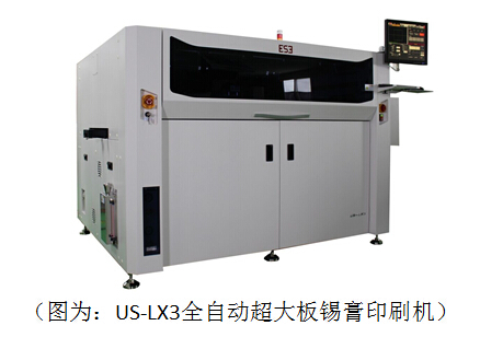 而全新推出的US-LX3(全自動超大板錫膏印刷機)具有生產(chǎn)適用范圍廣,操作平臺平穩(wěn)的特點。該設(shè)備配備的全自動操作系統(tǒng),操作流程簡便,能夠快速掌握使用設(shè)備,10080~1300600mm的超大適用范圍,±0.05mm的重復(fù)性等性能都將為客戶提供高效精確的服務(wù)。另外,配備的一些更便捷的選項系統(tǒng)(如錫膏自動供應(yīng)系統(tǒng),高精密刮刀控制程序,SPI連動系統(tǒng)等)可進一步提高生產(chǎn)效率,保證生產(chǎn)品質(zhì)。