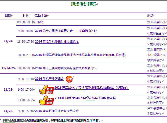 今年,上海勵(lì)擴(kuò)展覽有限公司還將邀請(qǐng)來(lái)自學(xué)術(shù)界和產(chǎn)業(yè)界的知名專家和專業(yè)人士為參會(huì)者提供包括建自觸摸屏制造、薄膜/膠粘帶、藍(lán)寶石、模切加工、電子產(chǎn)品制造、手機(jī)制造、模組廠商、光電顯示等行業(yè)的技術(shù)、行業(yè)發(fā)展動(dòng)態(tài)及最佳實(shí)踐在內(nèi)的豐富產(chǎn)業(yè)知識(shí)和最新產(chǎn)業(yè)發(fā)展動(dòng)向。