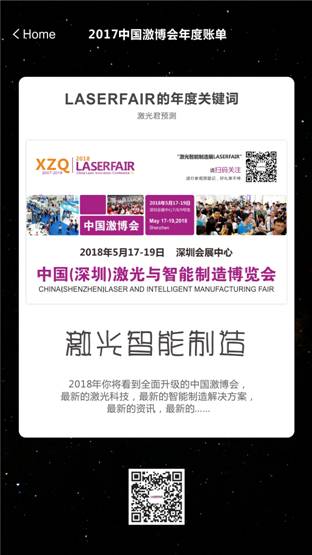 2017年悄然過(guò)去,支付寶的年度賬單火爆了朋友圈,這份賬單細(xì)數(shù)著你的點(diǎn)滴,也搭載著2018年的新希望伴您前行。2018中國(guó)(深圳)激光與智能制造博覽會(huì)(簡(jiǎn)稱中國(guó)激博會(huì))再起航,與您相約2018年5月17-19 日。