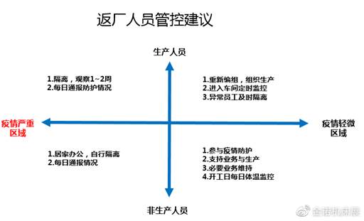 關(guān)于企業(yè)節(jié)后復(fù)工時(shí)間安排,按當(dāng)?shù)匾咔榭刂瞥潭冗M(jìn)行調(diào)整,確保疫情不蔓延。