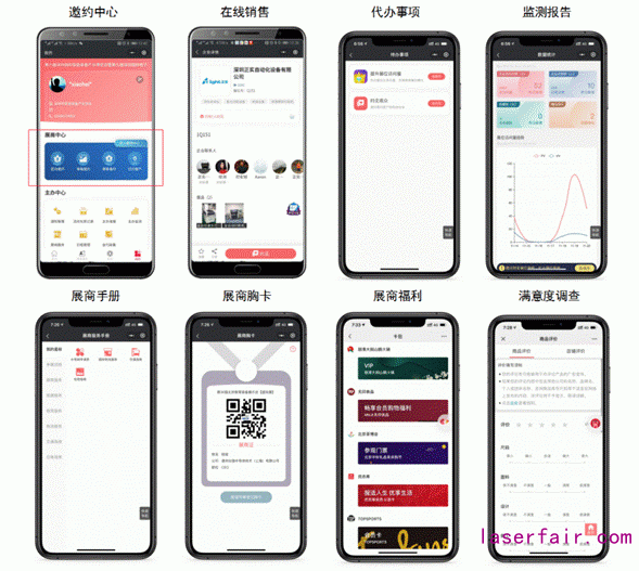 在線銷(xiāo)售、定向邀約、展商證件自助預(yù)約打印、代辦事項(xiàng)、數(shù)據(jù)監(jiān)測(cè)等人性化服務(wù)配套,完美助力展商宣傳與商務(wù)對(duì)接。