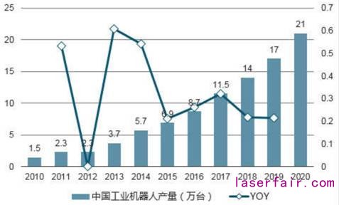 2020年隨著云技術、人工智能、5G 技術等新技術的商業(yè)化應用,工業(yè)機器人應用難度大幅降低,未來工業(yè)機器人將實現更多的功能。經初步統計,2019年我國工業(yè)機器人市場規(guī)模達到57.3億美元,到2020年,國內市場規(guī)模進一步擴大,預計將突破60億美元。3C、通信設備領域受益于5G的帶動,固定資產投資開始轉好,增幅趨勢有望延續(xù)全年。