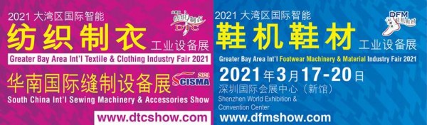 2021年3月17-20日,由訊通展覽公司、廣東省縫制設(shè)備商會(huì)主辦,廣東省鞋機(jī)協(xié)會(huì)協(xié)辦的“2021大灣區(qū)國(guó)際智能紡織制衣、鞋機(jī)鞋材工業(yè)設(shè)備展”(以下簡(jiǎn)稱(chēng)“2021DTC&DFM展”)、“華南國(guó)際縫制設(shè)備展(以下簡(jiǎn)稱(chēng)SCISMA展)”將在深圳國(guó)際會(huì)展中心17號(hào)館舉行。當(dāng)前,北方地區(qū)部分城市出現(xiàn)局部疫情,相比之下,華南地區(qū)疫情防控情況則較為穩(wěn)定,加之各級(jí)防疫部門(mén)已累積豐富的疫情應(yīng)急經(jīng)驗(yàn),相信在疫情常態(tài)化的今天,2021DTC&DFM展、SCISMA展能夠穩(wěn)定有序進(jìn)行。