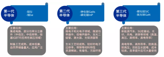 第三代半導(dǎo)體材料的禁帶寬度是第一代和第二代半導(dǎo)體禁帶寬度的近3倍,在高溫、高壓、高功率和高頻領(lǐng)域?qū)⑻娲皟纱雽?dǎo)體材料。