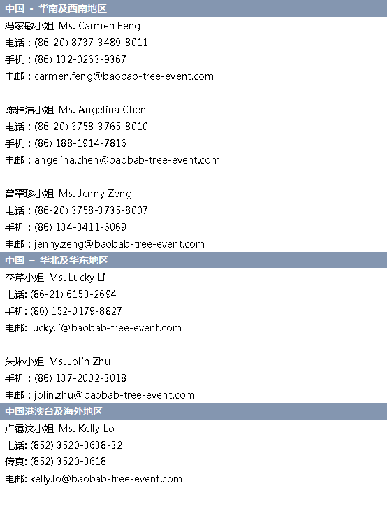 柏堡 (BTE) 成立于中國(guó)香港,是一家跨多領(lǐng)域大型活動(dòng)及展覽會(huì)策劃管理公司,在廣州設(shè)有分公司,在上海及北京均有項(xiàng)目團(tuán)隊(duì)。柏堡的服務(wù)范圍涵蓋展覽會(huì)組織承辦、國(guó)際展覽會(huì)銷售代理、會(huì)議管理服務(wù)、特別活動(dòng)組織、市場(chǎng)宣傳推廣、創(chuàng)意設(shè)計(jì)和媒體公共關(guān)系。柏堡的客戶遍布全球,業(yè)務(wù)領(lǐng)域涵蓋IT、專業(yè)視聽、燈光、主題樂(lè)園及景點(diǎn)、電子(線路板及電子組裝)、工業(yè)制造、健康食品及消費(fèi)品、政府及非營(yíng)利組織。柏堡現(xiàn)時(shí)在國(guó)內(nèi)組織承辦的項(xiàng)目包括全球最大規(guī)模的 「國(guó)際電子電路(深圳)展覽會(huì)」、亞洲行業(yè)最頂尖項(xiàng)目「北京InfoComm China」 、「IAAPA亞洲展博覽會(huì)」及世界知名「香港美酒佳肴巡禮」等。