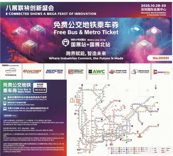 主辦方在開(kāi)展期間特別為前來(lái)展會(huì)的參展商和觀眾提供免費(fèi)公交地鐵乘車券,憑您的“2025亞洲工業(yè)科技展 ”任一展會(huì)的展商證或參觀證領(lǐng)取,每人每天限領(lǐng)2張,當(dāng)日領(lǐng)完為止。